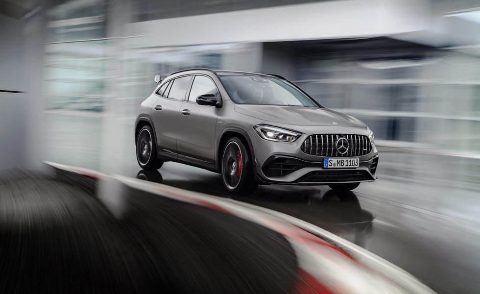 La otra versión AMG es el Mercedes GLA AMG 45 S 4Maticc con motor de cuatro cilindros, inyección mixta (directa e indirecta), sobrealimentación por turbocompresor, intercooler, tracción total y cambio automático de 8 velocidades de 421 caballos de potencia a 6.750 revoluciones por minuto y un par máximo de 500 Nm entre 5.000 y 5.250 revoluciones por minuto. Esta versión ya ronda los 85.000 euros.