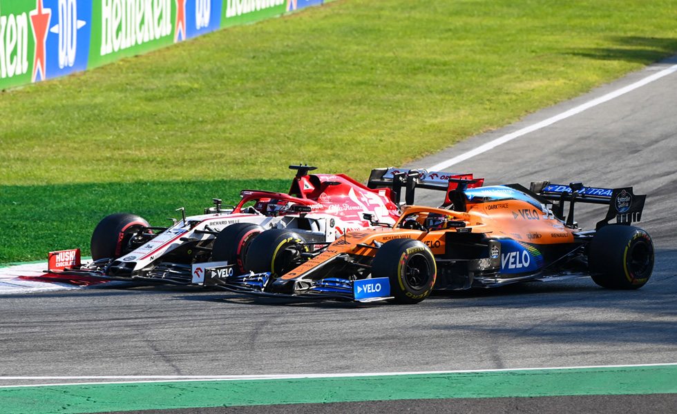 La atonía del GP de Bélgica una semana antes, afortunadamente, fue compensada con la inesperada explosión de emociones que deparó el gran premio italiano. Todo empezó cuando Carlos Sainz y Lando Norris superaron a Valtteri Bottas en la salida. Contra todo pronóstico, los McLaren alcanzaban en el trazado italiano su 'punto dulce' de la temporada». Cuántos se frotaban los ojos con el McLaren a la estela de Hamilton, y dejando además a sus rivales en la distancia. Hamilton ha aplastado durante toda la temporada cuando lideraba una carrera, y solo un error inusual ante la experiencia acumulada durante estos años por el equipo alemán, podía ofrecer alguna esperanza a los rivales. Inesperadamente, llegó ese error.