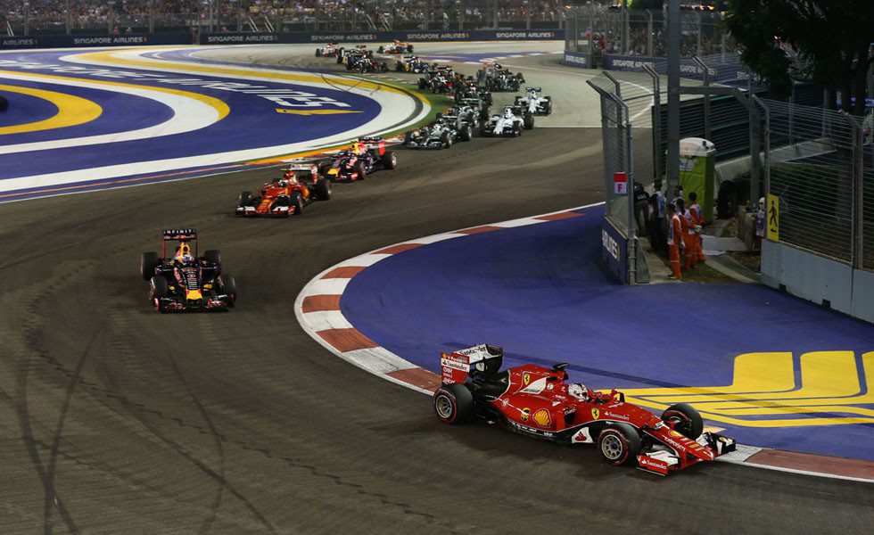 Solo siete milésimas separaron a los pilotos de Mercedes en la parrilla en Singapur. Pero el Gran Premio de Singapur fue un paseo para Hamilton, aunque con cierto susto al final. El británico necesitaba veintisiete segundos para su última parada en boxes para volver a la pista con tranquilidad. Al final, Hamilton volvió a la pista por detrás de Vettel pero le superó con toda facilidad. Simplemente, le pasó por encima, a quien sacó treces segundos en las seis vueltas finales. Rosberg se tenía que retirar con un monoplaza que se había vuelto loco electrónicamente.