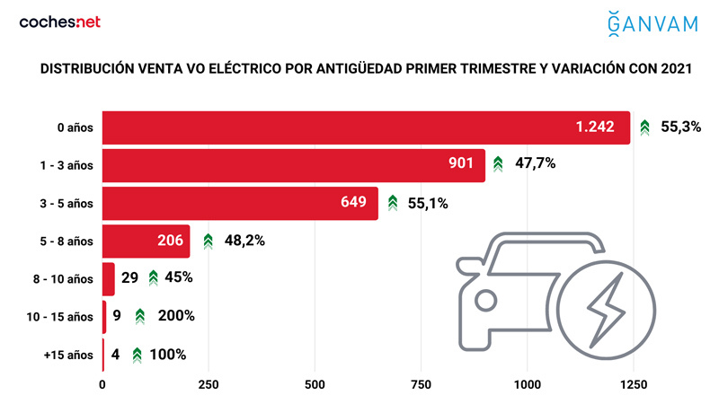 Los coches de entre uno y cinco años copan el 50% de las ventas de los eléctricos usados, motivo por el que tanto coches.net como Ganvam quieren impulsar la ampliación de las ayudas a la compra de estos modelos, ya que ahora solo pueden acogerse a ellas los que tienen una antigüedad de nueve meses y han sido matriculados por los concesionarios.