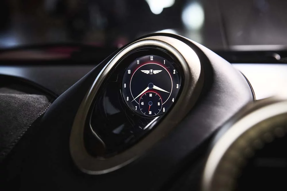 El interior del Carmen Sagrera también hará las delicias de los curiosos en Goodwood. Combina a la perfección con su espíritu deportivo, con una consola central rediseñada y un sistema de infoentretenimiento alineado con la paleta de colores de la marca. La tapicería de Alcantara, con detalles en piel negra y roja, subraya el carácter exclusivo del modelo.