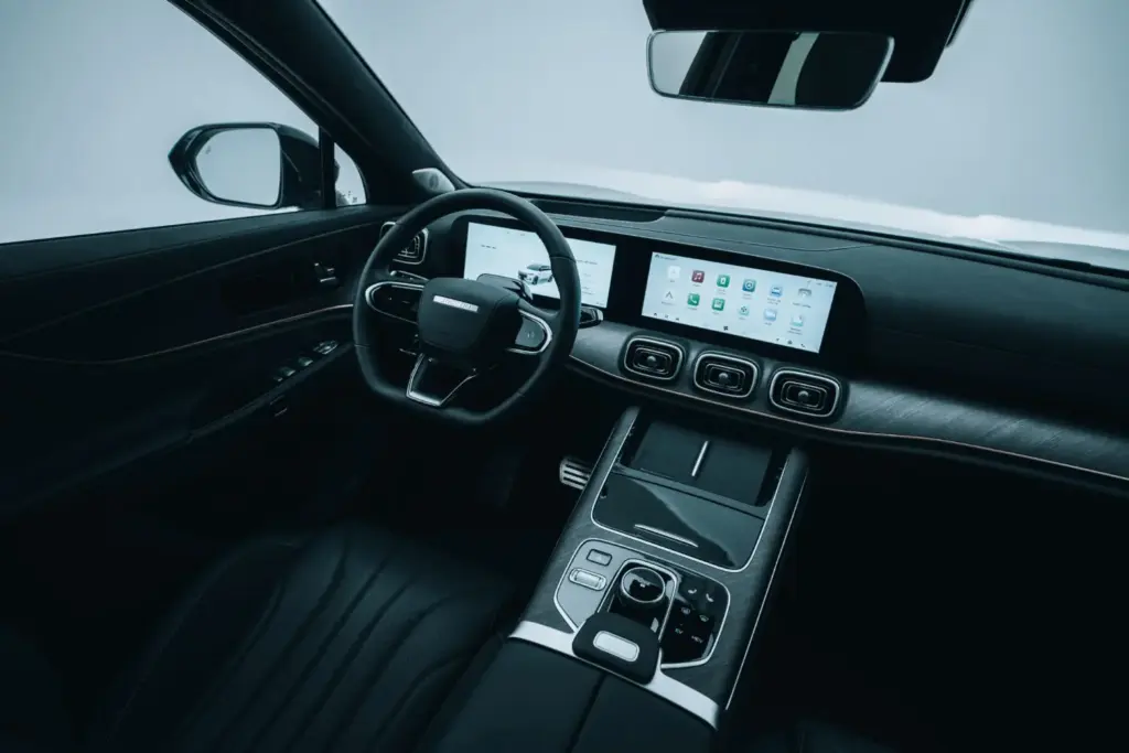 En el interior se ofrece un salpicadero que integra dos pantallas de 12,3 pulgadas cada una, destinadas a la instrumentación digital y al sistema multimedia. El habitáculo está realizado con una selección de materiales que combinan tapicería de cuero Nappa, paneles con acolchado de malla 3D y un revestimiento de techo con acabado tipo ante. El volante cuenta con ajuste eléctrico en cuatro direcciones, función de calefacción y palanca de cambios integrada.