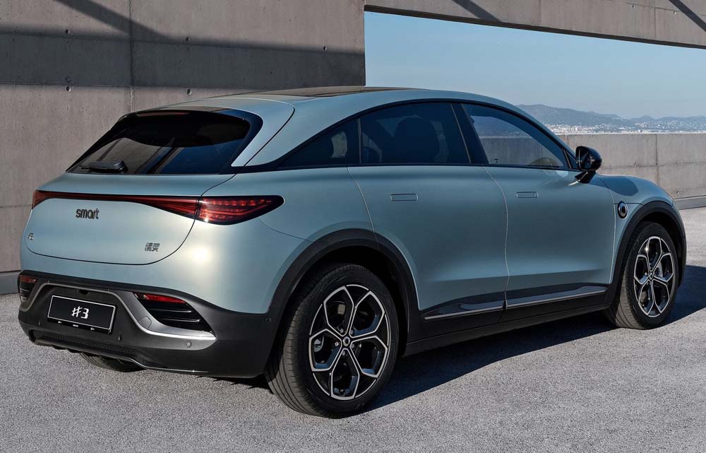 El segundo modelo de la marca es similar al Smart #1, pero remata la zaga de una manera más deportiva y mejora su dinámica. Mide 4,40 metros y tiene un maletero con 370 litros, más otros 15 en un compartimento bajo el capó delantero. El interior es muy aparente y se remata con rigor. Técnicamente la gama se diferencia entre sí por su batería, cantidad de motores y potencia.