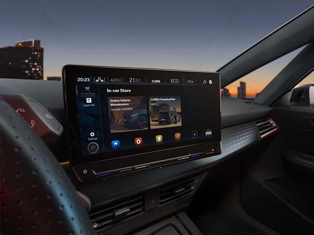 En el interior, la cabina forrada de Alcantara cuenta con un grupo de instrumentos digital de 12,3 pulgadas, una pantalla principal de 12,8 pulgadas y elementos de confort básicos que incluyen climatizador automático, cierre centralizado de puertas y ventanas eléctricas. Este vehículo biplaza también tiene un área de carga trasera detrás del compartimiento del motor.