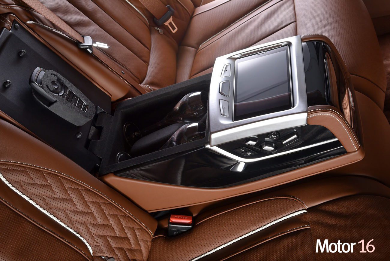 Inicio BMW 750Li Solitaire. Imágenes detalles interior BMW 750Li Solitaire. Imágenes detalles interior Las plazas traseras cuentan con un refrigerador y dos copas de vino para disfrutar del viaje. También se han creado unos cojines para incrementar el confort. Publicidad