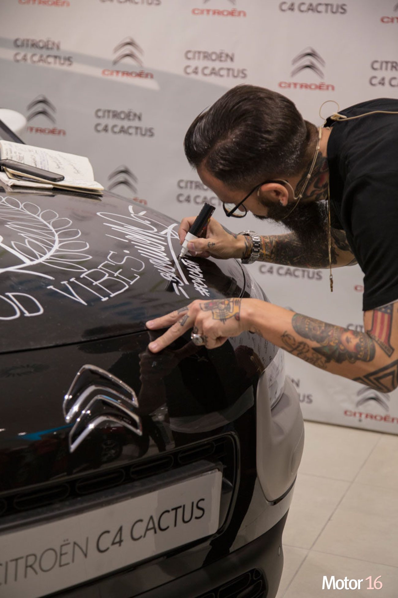 Inicio Citroën C4 Cactus Bnomio. Fotos coche Citroën C4 Cactus Bnomio. Fotos coche El artista Bnomio ha creado una serie de pegatinas inspiradas en el Cactus. Y tatuó el capó de un coche en directo. Publicidad