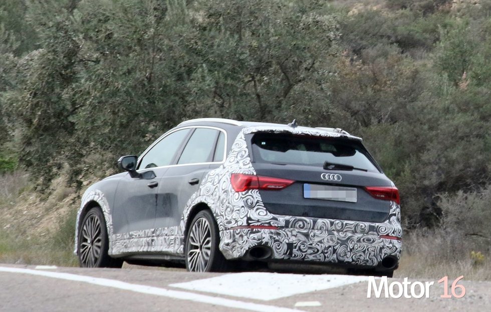 Inicio Audi RS Q3. Fotos espía trasera Audi RS Q3. Fotos espía trasera En la trasera se aprecia el alerón trasero de generoso tamaño, los dos tubos de escape ovalados o el difusor entre ambos tubos de escape. Publicidad