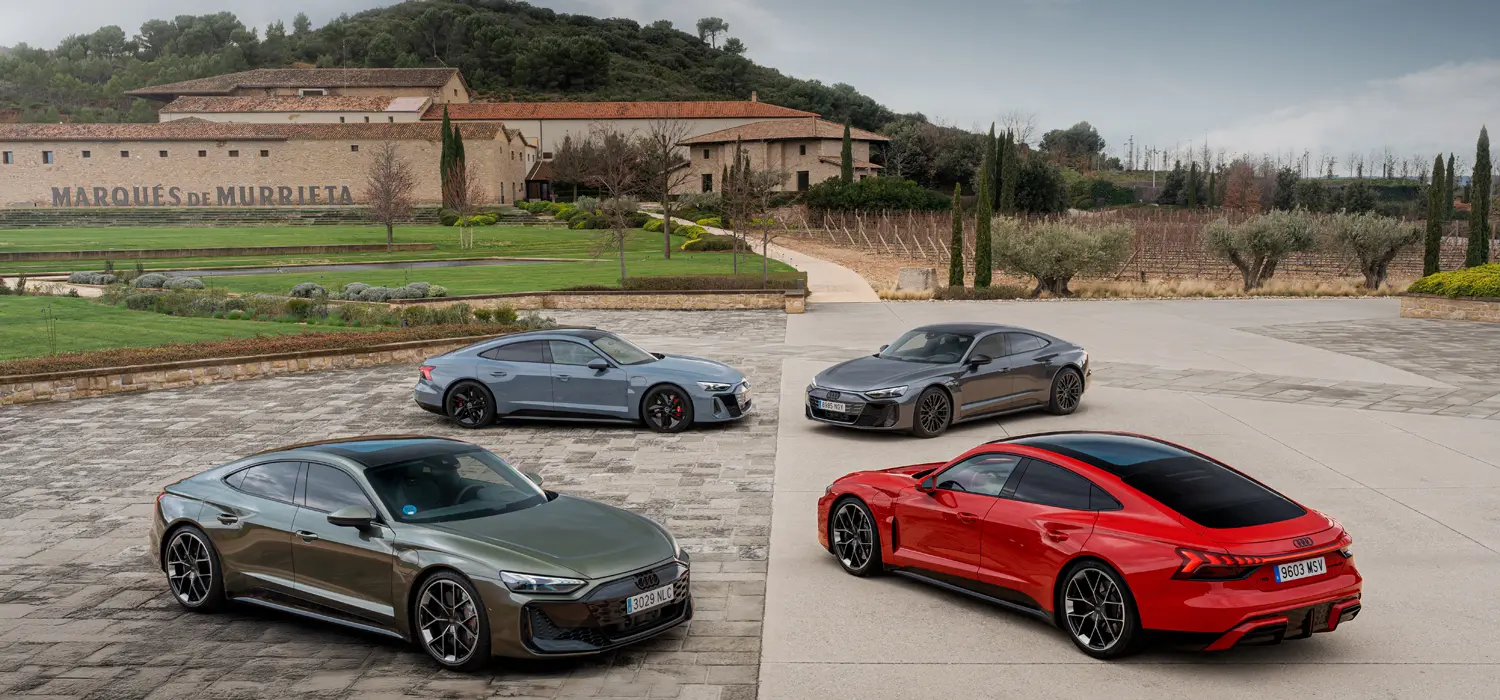 Esa mezcla de tradición y vanguardia que Audi impregna en todo lo que hace se ve en este modelo. Y se aprecia también en la propuesta para la presentación de la nueva gama del eléctrico de los aros. Porque en Audi España han pensado que su mejor coche está entroncado con la mejor bodega del mundo, en un viaje que nos lleva desde Madrid a tierras de La Rioja, la cuna de Marqués de Murrieta, elegida mejor bodega del mundo. Ahí el e-tron GT se une a un proyecto con los mismos valores de tradición y vanguardia.