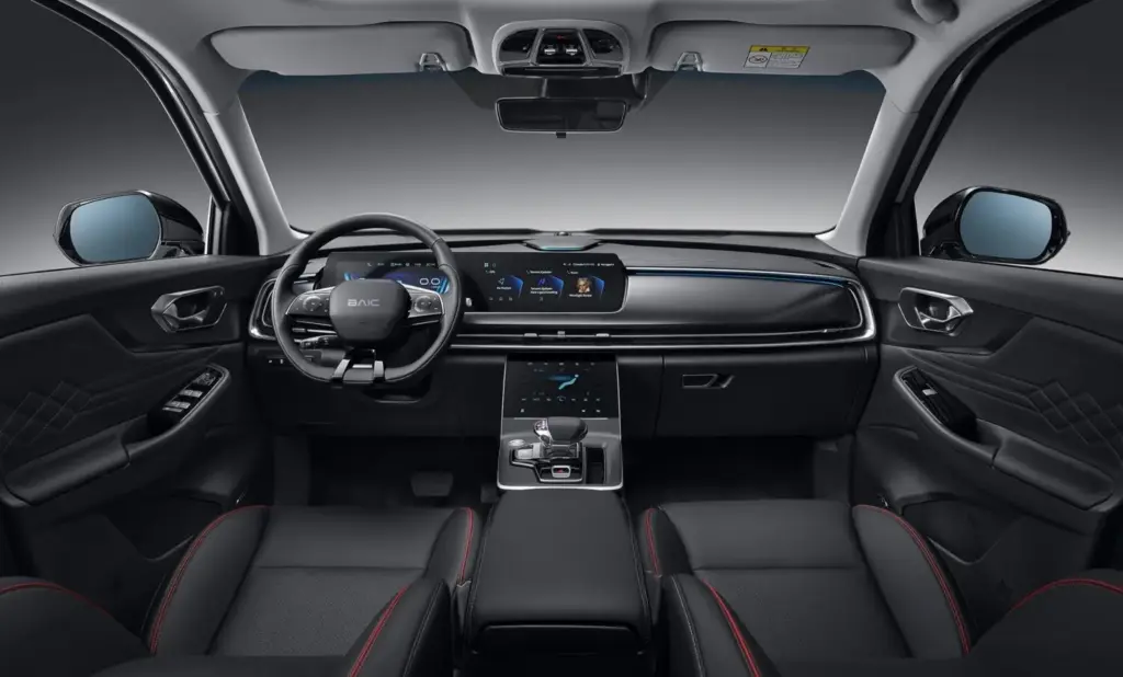 En cuanto al equipamiento, el BAIC X75 destaca por ofrecer de serie elementos poco habituales en su rango de precio. Los asientos, tapizados en cuero, cuentan con calefacción, ventilación y función de masaje, elevando notablemente el nivel de confort. También incluye cargador inalámbrico para smartphones y un sistema de climatización con purificación del aire, pensado para mejorar la calidad ambiental en el habitáculo.
