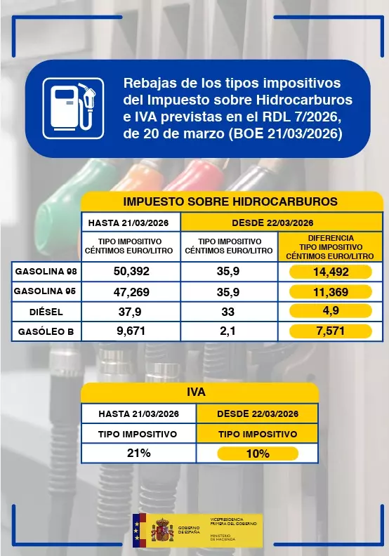 Entre las medidas que ha aprobado el ejecutivo, encontramos que el IVA de la gasolina y el diésel ha bajado del 21% al 10% y también que el impuesto especial sobre hidrocarburos se ha reducido hasta el mínimo que permite la normativa europea. Las dos medidas afectan directamente al precio del combustible en el surtidor, al menos en la teoría.