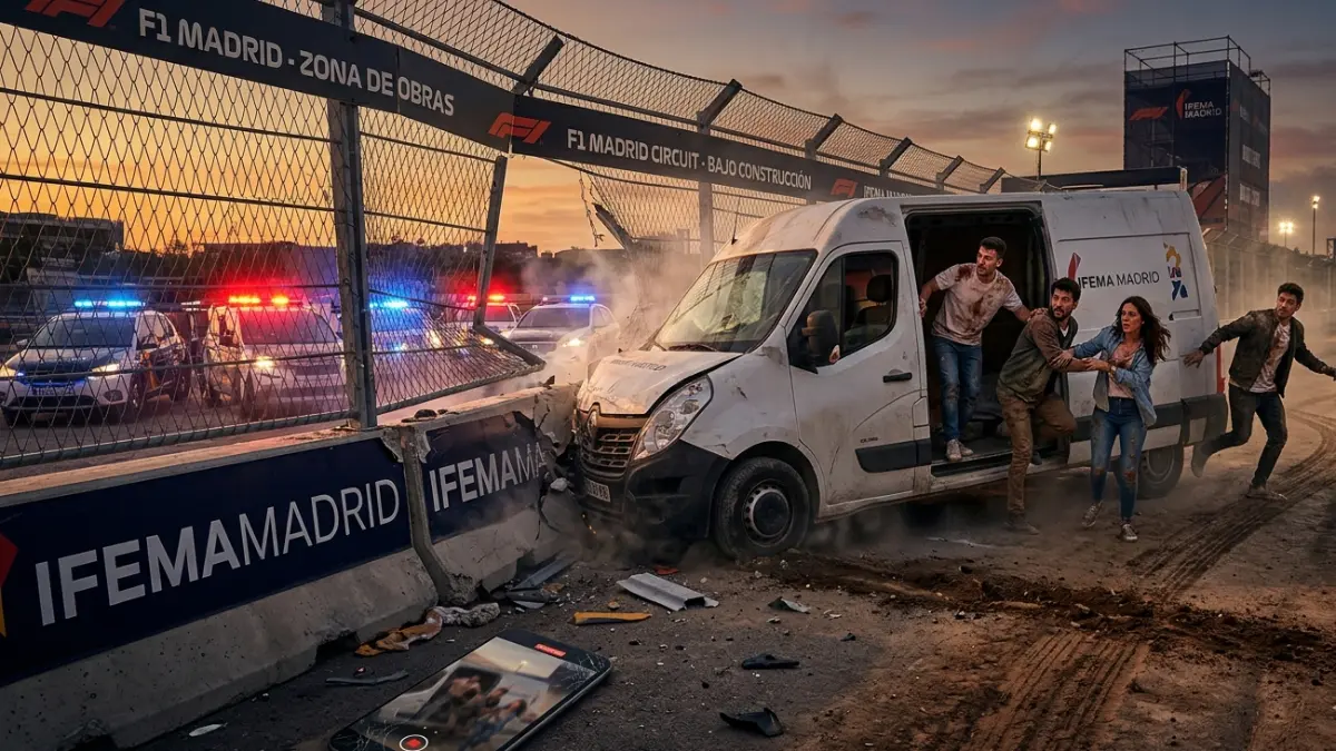 Madrid lleva meses soñando con el rugido de los motores de la Fórmula 1 para 2026, pero nadie esperaba que el «estreno» del asfalto corriera a cargo de una furgoneta blanca de mantenimiento. Cuatro jóvenes, movidos por la adrenalina y la falta de juicio, decidieron que no podían esperar dos años para probar el trazado semiurbano de Valdebebas. Su plan: colarse en las obras, «tomar prestada» una furgoneta del recinto y marcarse su propia vuelta rápida.