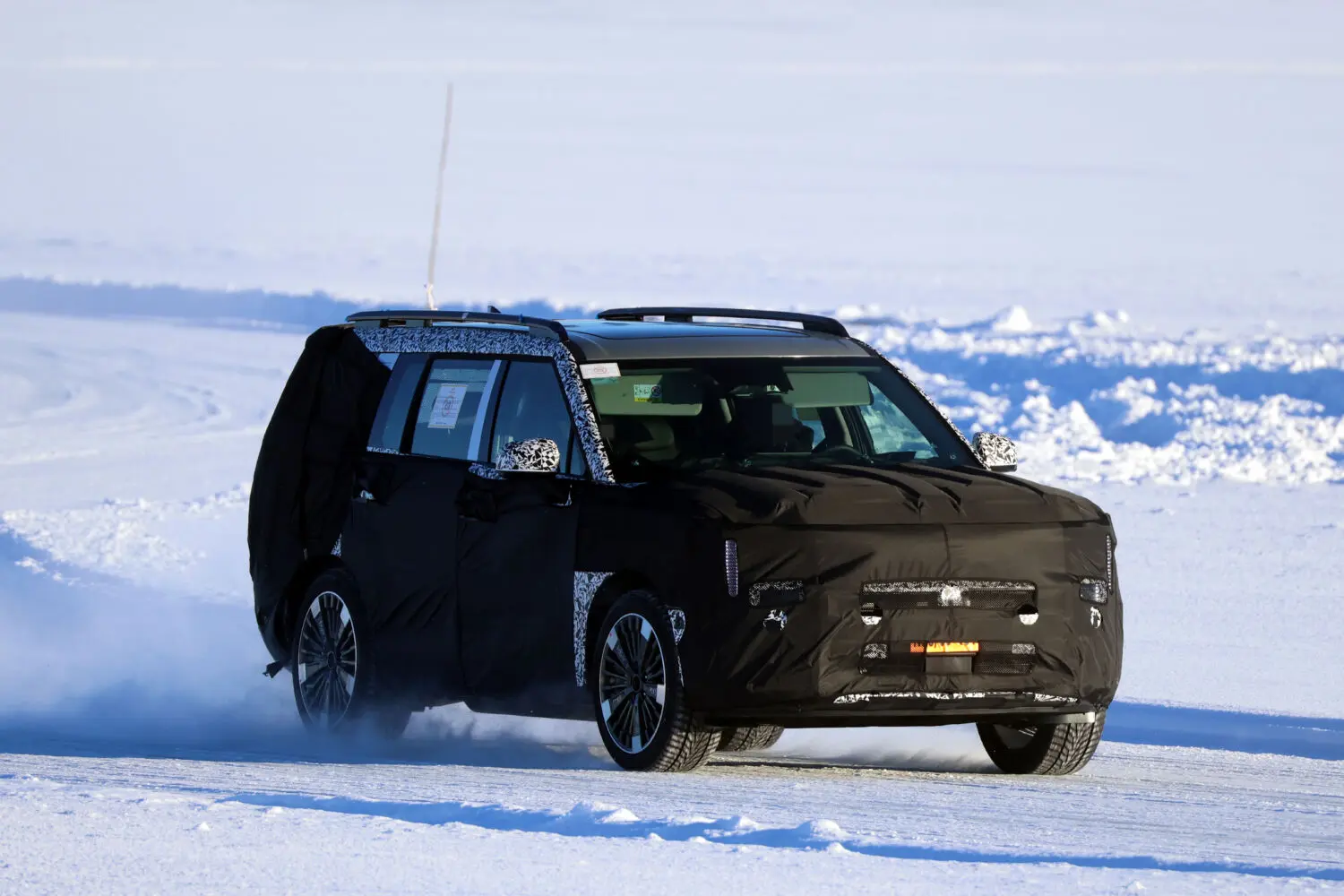 En cuanta a la parte estética, sucede lo mismo que en casi todas las ocasiones en las que está implicado el grupo Hyundai-Kia: el camuflaje es tan espeso que no deja apreciar detalles. De hecho, si no fuese por los característicos trazos de la carrocería del Santa Fe, sería realmente complicado saber cuál es el coche que oculta.