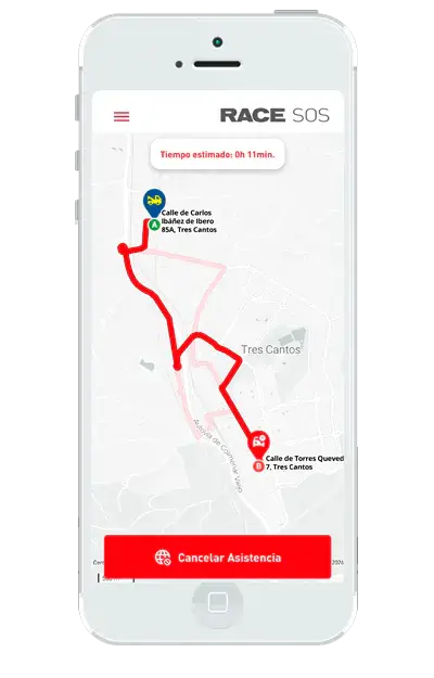 Para los socios del RACE, la aplicación permite pedir auxilio en carretera directamente desde el teléfono, conectando de forma inmediata con la central de operaciones. El dispositivo usa la geolocalización automática para transmitir la posición exacta del coche a la central operativa del RACE sin necesidad de explicar dónde se está.