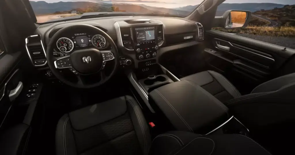 En el interior, los cambios que recibe este RAM 1500 BackCountry son más sutiles pero funcionales. Los asientos delanteros se han tapizado en un vinilo negro resistente, con inserciones de malla estampada que mejoran la ventilación y el agarre del cuerpo en conducción off-road. Destaca también el sistema de almacenamiento MOLLE en los respaldos de los asientos delanteros, siendo una solución ideal para sujetar herramientas, botellas o accesorios gracias a las correas y a los ganchos modulares.