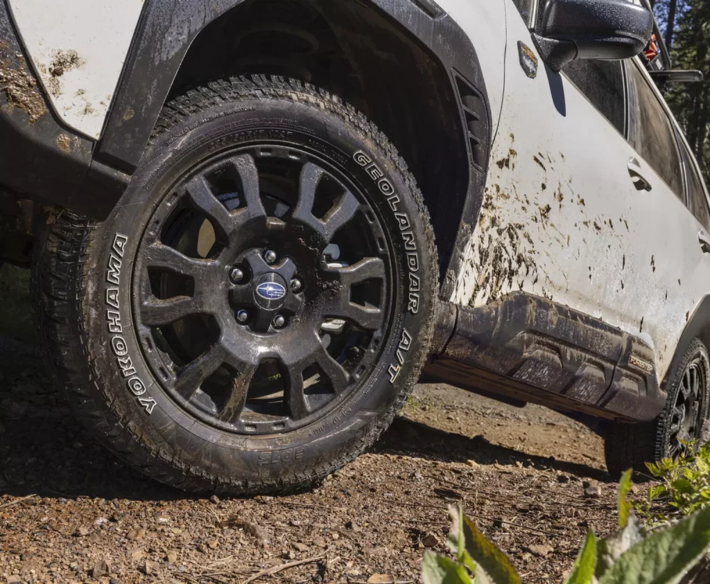 El sistema X-MODE con doble programa —para nieve/tierra y nieve profunda/barro—, junto al control de descenso, permite gestionar situaciones complicadas con mayor seguridad. A ello se suman neumáticos todoterreno Yokohama Geolandar montados sobre llantas exclusivas de 17 pulgadas, que mejoran la tracción en superficies deslizantes.