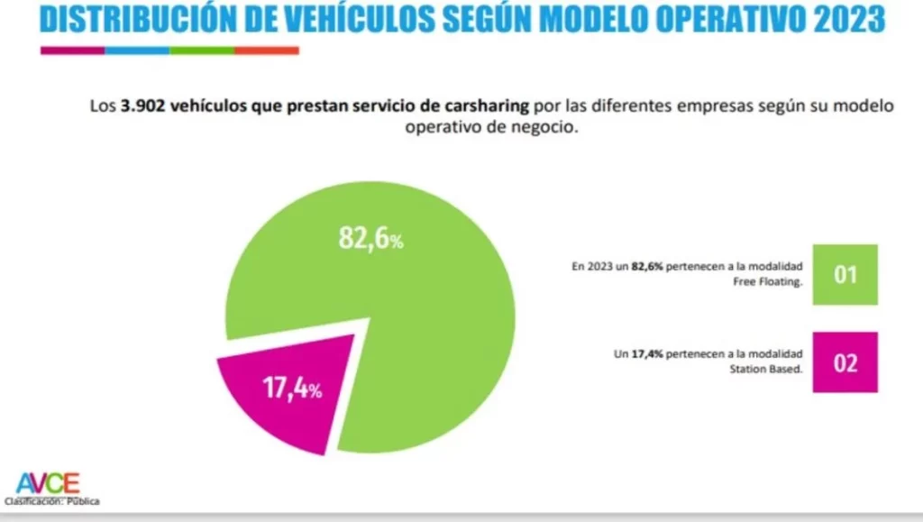 En España actualmente hay activos dos modalidades de carsharing, las conocidas como “free floating” y “station based”. La primera contempla un sistema de alquiler por minutos, sin base fija y en la que los vehículos se localizan y contratan en la calle de manera directa a través de aplicaciones móviles . Una vez utilizados, los vehículos también son estacionados por los usuarios cuando concluyen su tratecto con los mismos.