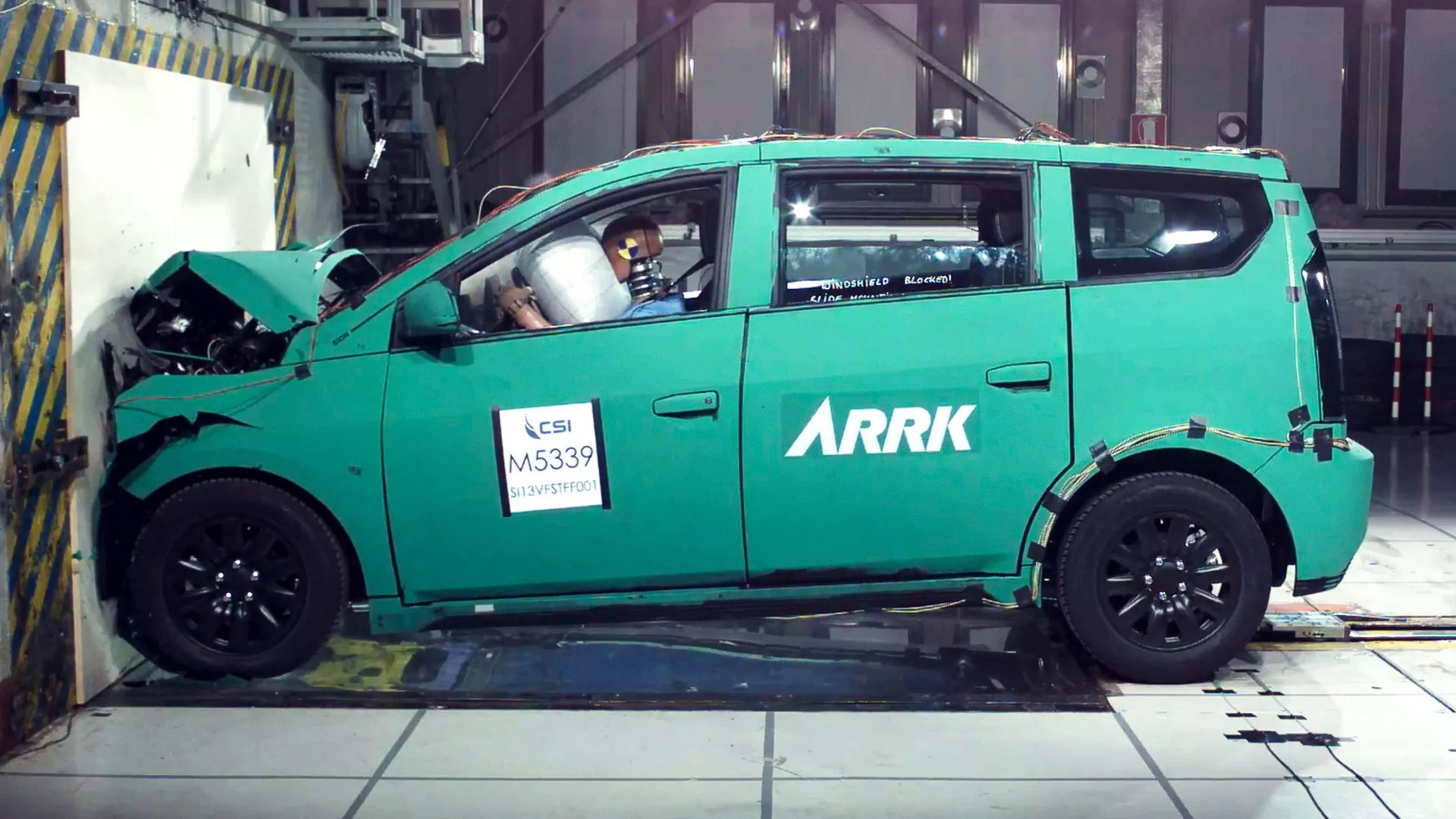 La primera prueba de impacto realizada al Sono Sion se produjo a una velocidad de 50 km/h. En ella se analizó el comportamiento de los paneles solares patentados por la propia start up Sono Motors. Sobre todo para comprobar que estos componentes vitales para el funcionamiento de este esperado vehículo no se astillaron durante la prueba de colisión. Con ello se puede decir que estos no suponen un peligro para los pasajeros, ni para el resto de usuarios de la vía.