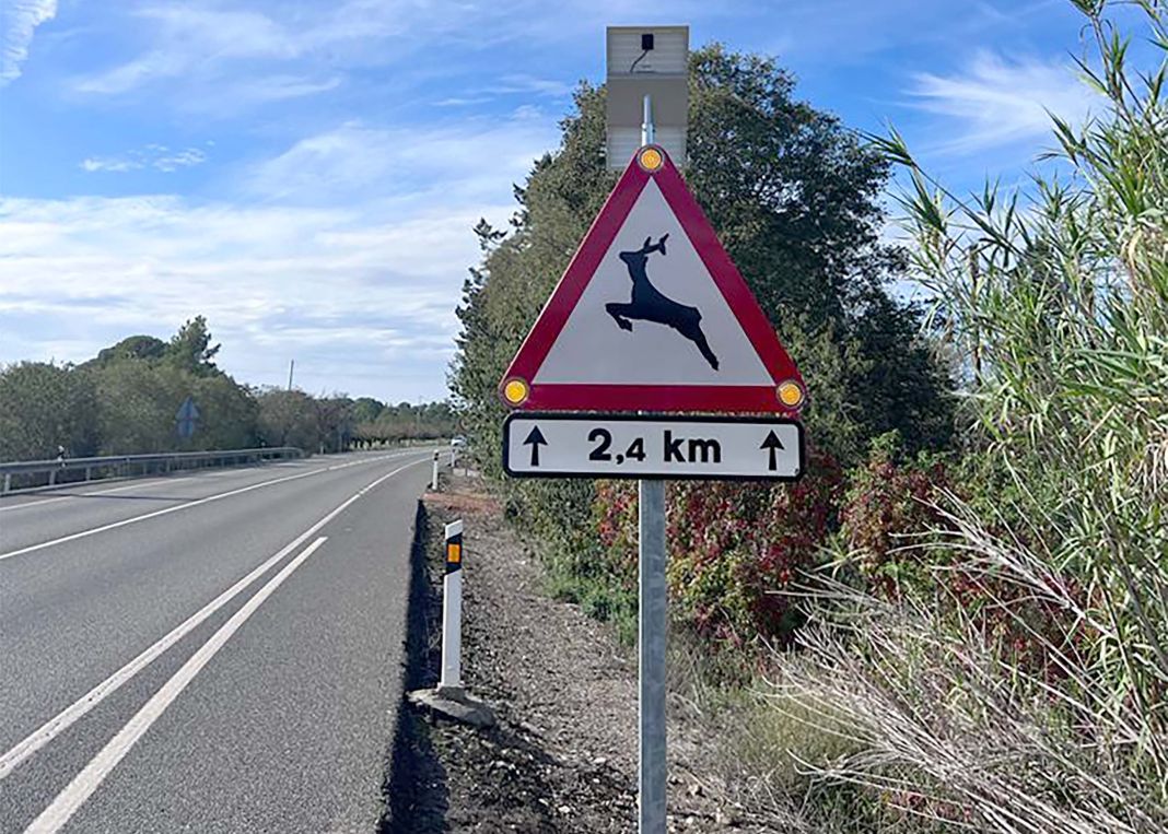 Estas señales instaladas en tramos estratégicos en los que se ha detectado una fuerte proliferación de animales salvajes, entre los que destaca el jabalí, funcionan con energía solar que las hacer mas visibles, especialmente en la conducción nocturna.