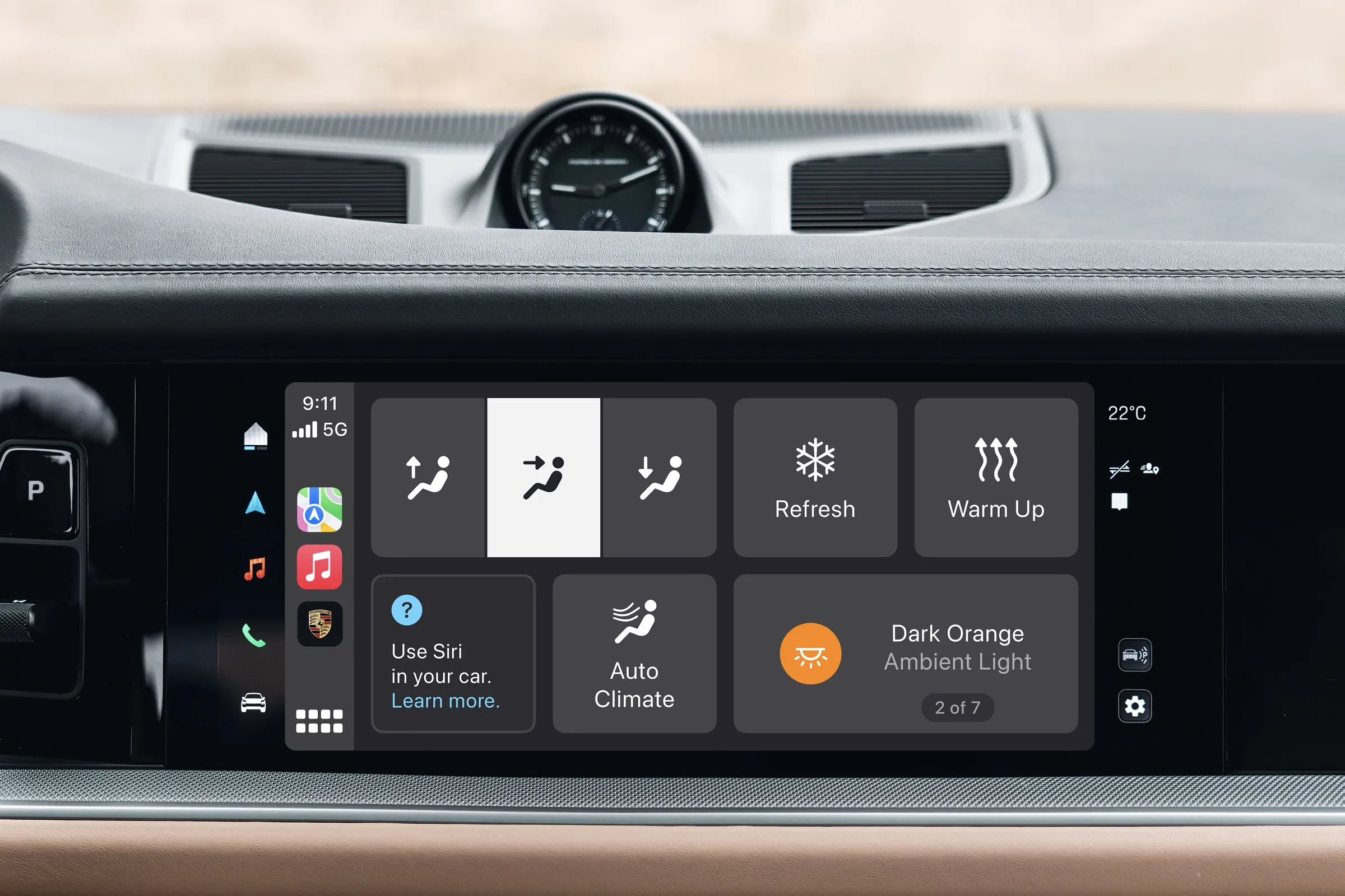 La aplicación Climate ofrece acceso directo a los controles de climatización del vehículo. Desde ajustar la temperatura del aire acondicionado o la calefacción hasta controlar la velocidad del ventilador y activar los asientos y el volante calefactables, esta aplicación mejora significativamente la comodidad del conductor.