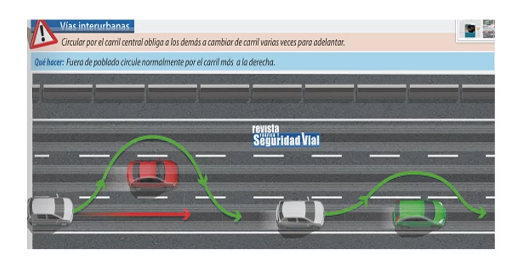 Y no, no está permitido entorpecer la circulación por el carril izquierdo ni quedarnos en él aunque circulemos a 120 km/h. En vías de tres carriles, también es obligatorio circular siempre por el derecho y no por el central, como hacen muchos conductores, normalmente porque el derecho suele estar ocupado por camiones e incluso en peor estado por la circulación constante de vehículos de gran tonelaje.
