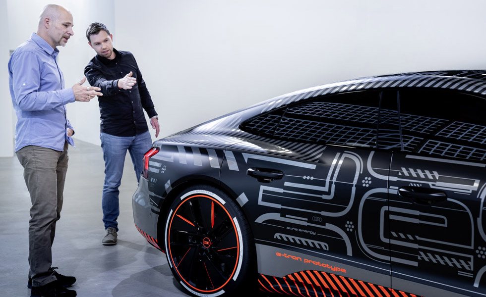 Los responsables de crear la banda sonora de este e-tron GT han sido Rudolf Halbmeir y Stephan Gsell, dos músicos que se han inspirado en elementos tan variopintos como en el sonido de un helicóptero teledirigido, en un destornillador inalámbrico e incluso en el 'ruido' que emite el aire de un ventilador al hacerlo pasar por un tubo de plástico, para así llegar a generar una gama de 32 sonidos diferentes para adaptarse a cada situación en la conducción, siendo la primera vez que un Audi ofrece un sistema sonoro tan complejo.