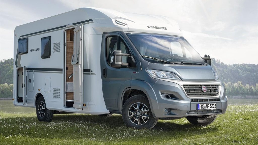 Esta caravana es ideal para parejas con un niño. La Weinsberg CaraSuite Ford 550 MG, de 5,99 metros de largo, es una autocaravana perfilada espaciosa para hasta cuatro personas. Incluye un garaje, cama doble en la parte trasera y una segunda cama en el techo ideal para un niño. Ofrece cocina completa y cuarto de baño con ducha.