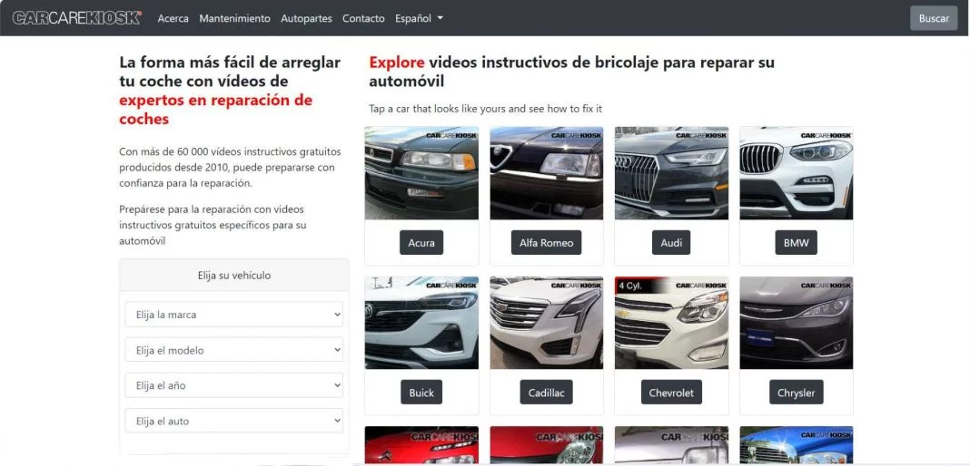 El sitio web de Car Care Kiosk incluye un buscador en el que se deben ingresar datos específicos del automóvil, como marca, modelo y año. Una vez que se ha registrado esta información, la página despliega una lista de componentes que pueden ser reparados o mantenidos por el usuario. Las instrucciones abarcan desde el mantenimiento del sistema de aire acondicionado hasta la revisión del líquido de frenos o la sustitución de fusibles.