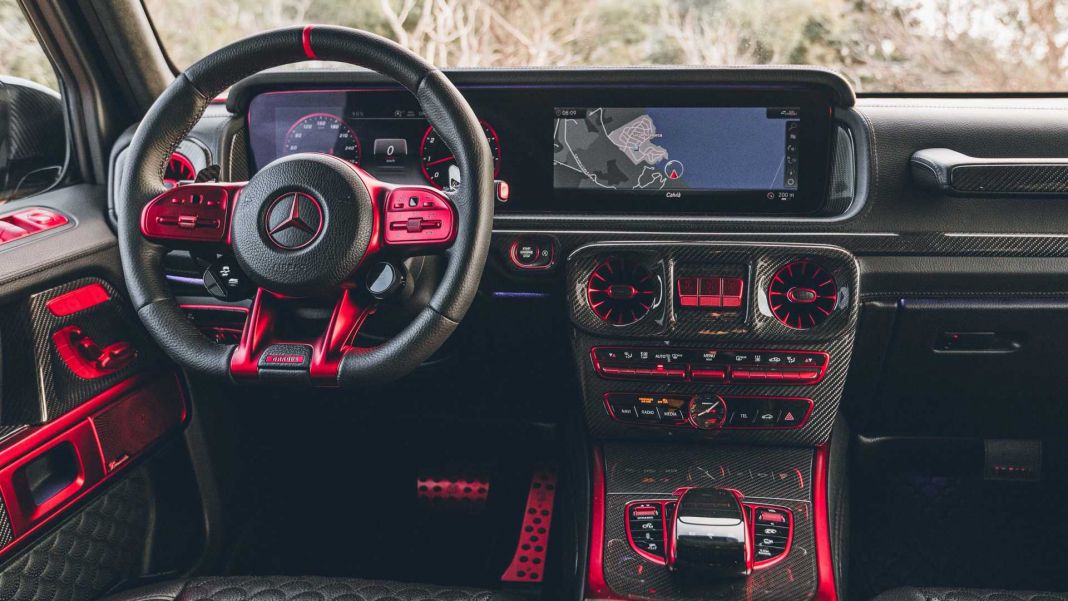 Cada detalle interior está terminado en el tono «Rocket Red» que le confiere un acabado único. Más de 206 elementos del Brabus 900 XLP rematados con esta terminación, incluyendo listones decorativos, interruptores, cubiertas del sistema audio o las salidas de aire.