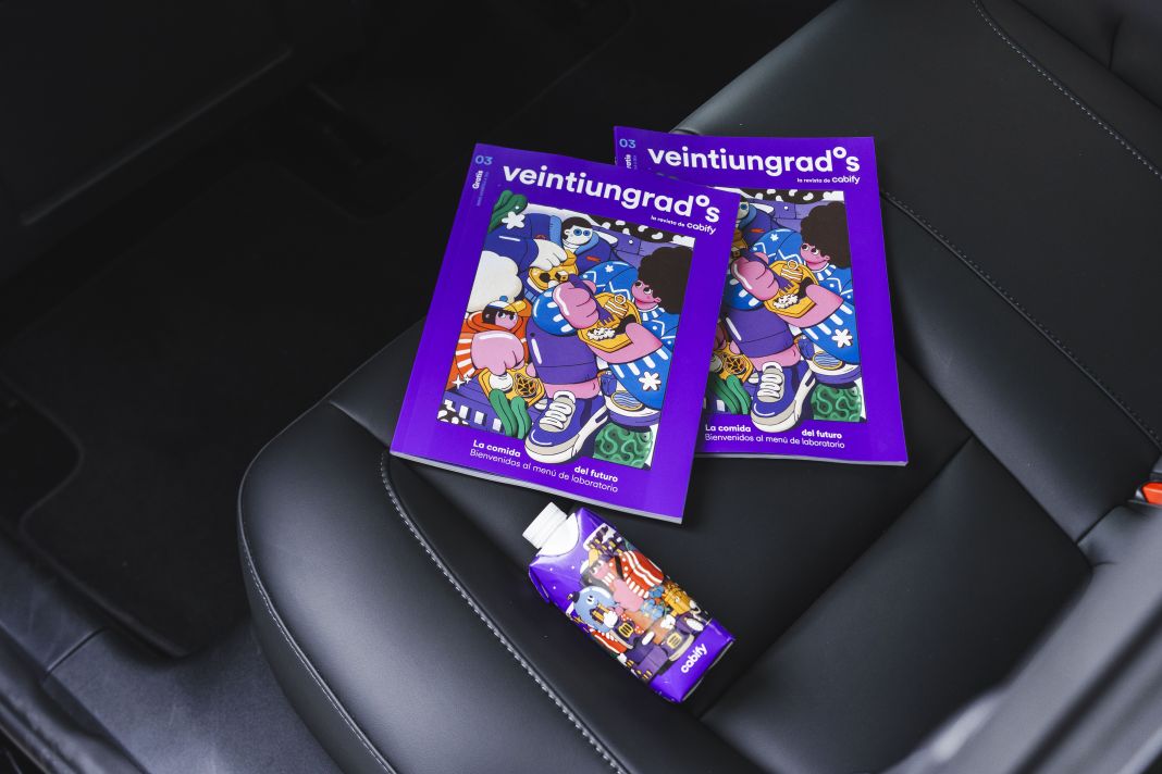 Adicionalmente, durante el mes de diciembre, Cabify ofrece a los usuarios en sus vehículos conectados la tercera edición de ‘Veintiungrados’, una revista que proporciona contenidos gratuitos para que los pasajeros disfruten durante su trayecto o la lleven consigo al finalizar. Geco, el mismo artista detrás del diseño de las botellas, también ha contribuido con la portada de esta edición. Con más de 90 páginas y cuatro secciones distintas, la revista sumerge a los lectores en un viaje informativo sobre temas de actualidad, arte y sostenibilidad, desde los parques secretos de Barcelona hasta las mejores terrazas de Madrid.