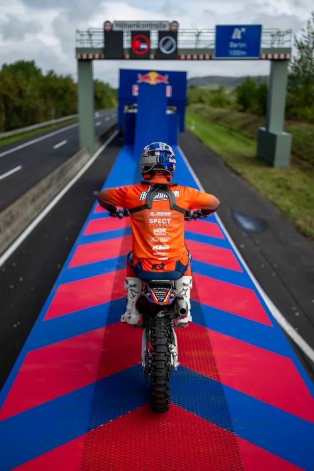 El piloto germano se ha enfrentado a una de las maniobras más arriesgadas jamás vistas: ejecutar un backflip sobre una autopista, utilizando como rampa y zona de aterrizaje dos camiones en movimiento. No hablamos de un truco preparado en un estadio con todo calculado al milímetro bajo techo, sino de una acción en plena vía, con viento, asfalto caliente y la tensión de saber que un solo error podría tener consecuencias dramáticas. Y, sin embargo, Ackermann lo convirtió en un espectáculo que combina adrenalina, ciencia y un dominio absoluto de la moto.