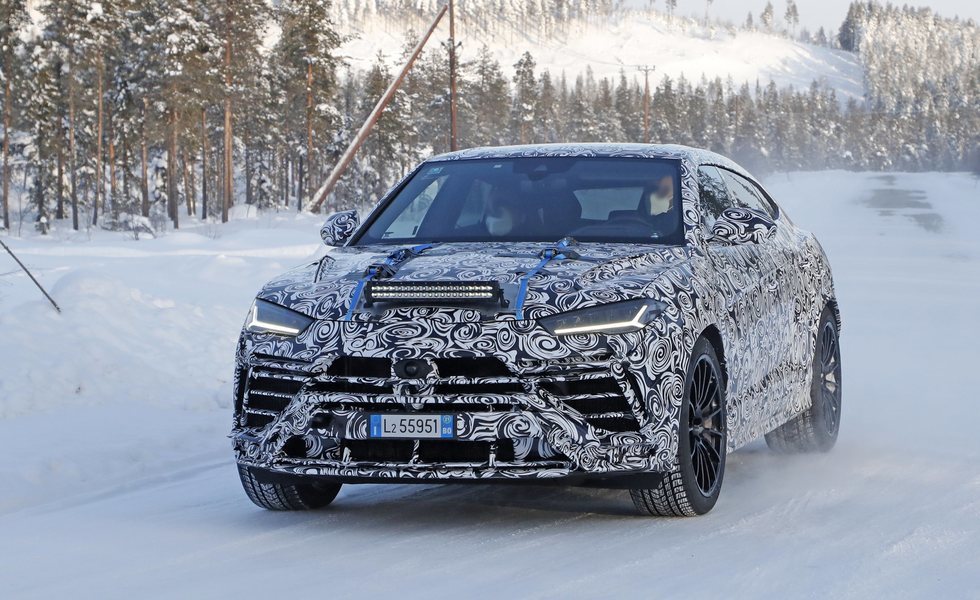 Unos días después de cazar al futuro Porsche Cayenne -el 'primo' alemán de este Urus- vemos al modelo de Lambo ya en pruebas sobre las heladas carreteras de Suecia. Ahí está llevando a cabo pruebas junto a un Lamborghini Urus de la actual generación.