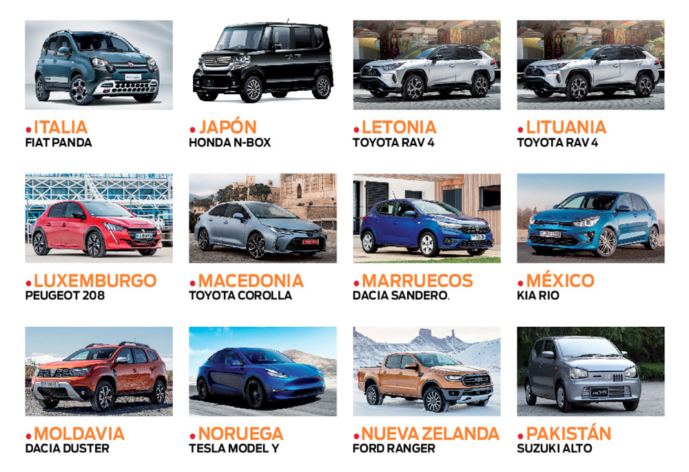 El mundo es muy grande y los gustos muy dispares en todos los sectores. Y en el del automóvil aún más. Para saber qué coches se venden más en cada país, cuáles son las marcas más deseadas y las carrocerías elegidas, analizamos las preferencias de 56 de los principales mercados mundiales. Mucha variedad de modelos y una marca que triunfa claramente.