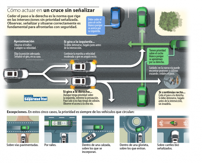 De forma similar, si la intersección es de incorporación a una vía, se les concederá la prioridad a los que manejen la ruta primordial y lo mismo sucederá en el caso de llegar a una glorieta, donde los vehículos que ya circulen por ella tendrán el paso. En otras palabras, lo más acertado es andar por la zona externa y no abandonarlo hasta que lleguemos a nuestra salida.