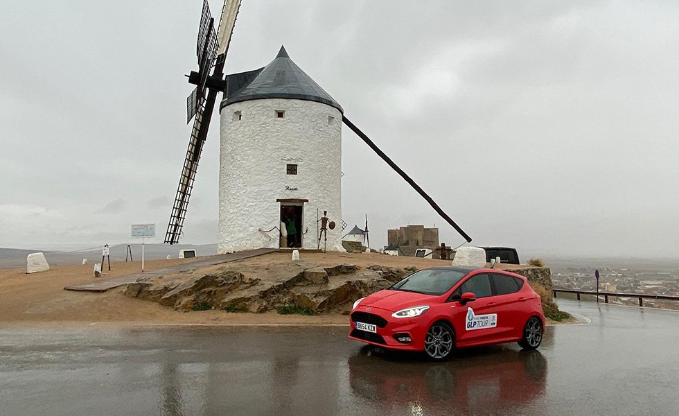 El trayecto se realiza con total normalidad y sin recurrir en ningún momento a la utilización de la gasolina e incluso nos permitimos desviarnos hasta Consuegra con el fin de realizar algunas fotografías de la experiencia y de paso volver a circular fuera de la autovía un rato más. A nuestro paso por Madrid, hacemos una parada para repostar en la estación de servicio AutoGas Repsol de La Atalaya, situada en la M-50 entre Boadilla del Monte y Villaviciosa de Odón. Y es que Repsol cuenta con más de 400 estaciones que incorporan surtidores de GLP, lo que supone más del 60% del total ya que España cuenta en la actualidad con 670 puntos de repostaje de este combustible. Es por tanto una tarea de este Ford Fiesta GLP Tour desmontar la idea de mucha gente de que los vehículos propulsados por gas son únicamente para las ciudades. La red de estaciones de la que dispone España -y que sigue creciendo- hace que viajar con nuestro coche GLP sea tan sencillo como económico, ya que llenarlo de gas nos cuesta a penas 20 euros.