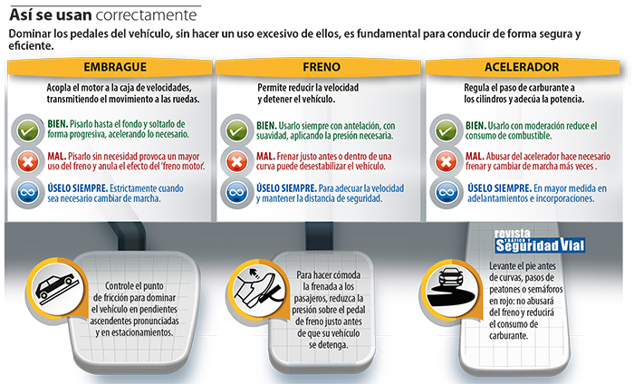 Debemos recalcar, que el uso incorrecto de los pedales del vehículo origina un desgaste imperceptible que suele terminar en grandes daños. Por ende, cuidar nuestra conducción puede ofrecerles una vida útil más eficiente. Debido a que, pequeñas prácticas como no pisar el embrague a fondo puede deteriorar la caja de cambios. Frenar de manera entrecortada conlleva un desgaste de los discos, pastillas y líquidos de frenos. Y realizar aceleraciones fortuitas pueden perjudicar a las válvulas, inyectores y pistones mecánicos.