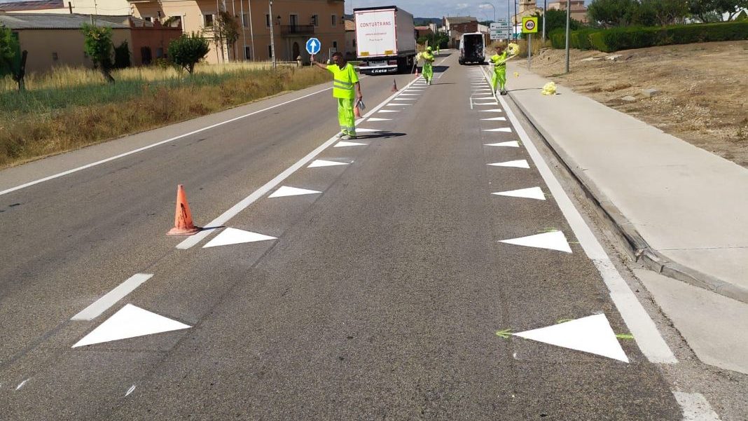 Te imaginas ir conduciendo por la carretera y de repente encontrarte estas líneas pintadas en el suelo. Estos inquietantes triángulos puestos a lo largo de la carretera son una innovación de la DGT para aumentar la seguridad vial. Es un tipo de señalización experimental que se está probando de manera original en un municipio de Burgos llamado Nava de Roa.