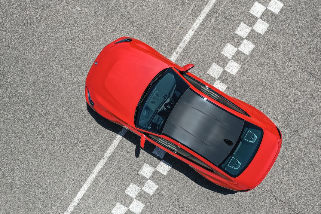 El nuevo BMW M2 viene con un techo ligero de carbono M de serie. Con su color oscuro, la estructura expuesta de su plástico reforzado con fibra de carbono (CFRP) y un recorte central, contribuye a las medidas de ahorro de peso del coche.