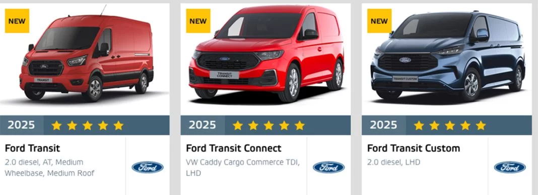 Las furgonetas que han recibido la máxima calificación de cinco estrellas Euro NCAP por su rendimiento de seguridad son: Citroën Jumper (Relay); Farizon SV; FIAT Ducato; Ford Transit; Transit Connect; Transit Courier y Transit Custom; Maxus eDELIVER 5; Mercedes-Benz Citan; Sprinter y Vito; Nissan Interstar; Opel/Vauxhall Movano; Peugeot Boxer; Renault Kangoo Van y Master; VW Caddy Cargo, ID.Buzz Cargo y Transporter.