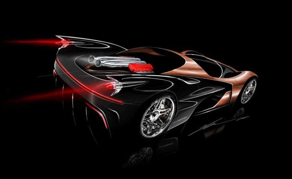 Avanzamos rápido hasta nuestros días y el propio Halstead nos sorprende ahora con estos bocetos de su futuro proyecto, que nace sobre un avanzado chasis fabricado en fibra de carbono con unas proporciones semejantes a las de un Lamborghini Aventador, pero con un particular habitáculo con tres asientos al más puro estilo del McLaren F1 y un puesto de conducción central. Curiosamente Barry Lock, un ingeniero que trabajó en el desarrollo del legendario F1, está muy involucrado en este proyecto de Halstead, que carece de puertas y de techo, pues se dice que será tan bajo que para acceder a su interior bastará con pasar por encima de sus laterales.