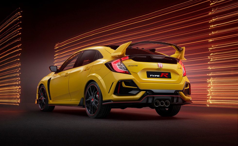 Todos y cada uno de estos Honda Civic Type R Limited Edition está pintado en un exclusivo color denominado Phoenix Yellow, que contrasta con el color negro brillante que se aplica en su techo, en los retrovisores y en la toma de admisión del capó.