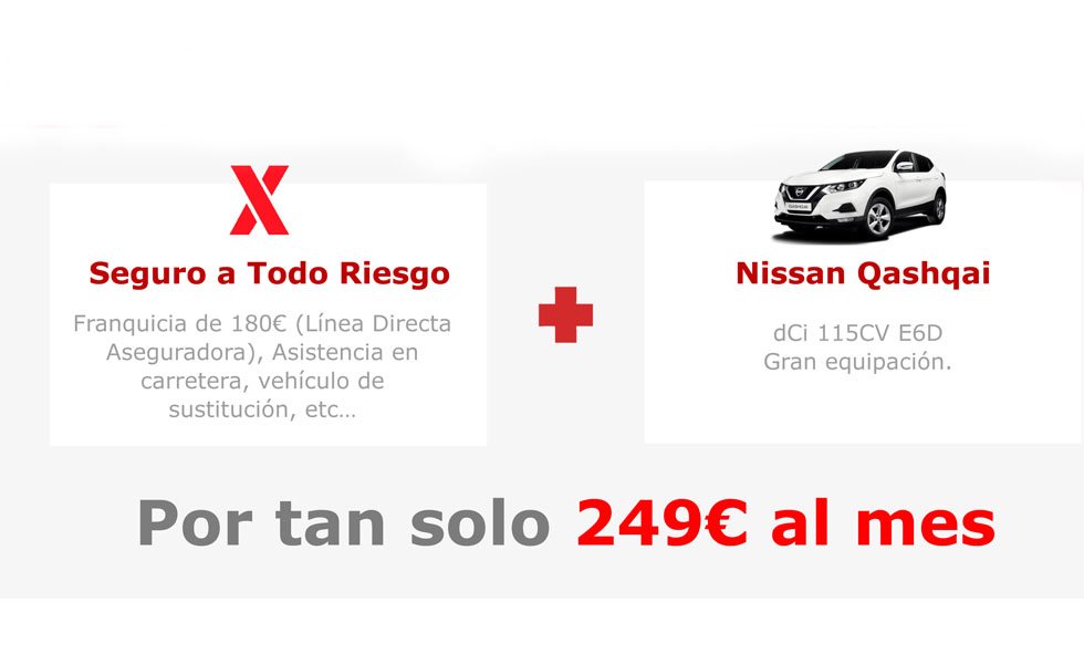 Línea Directa Aseguradora ha presentado 'Llámalo X', el primer seguro a todo riesgo con coche incluido que se lanza en España. Este pack incluye un Nissan Qashqai dCi 115 CV E6D asegurado a todo riesgo con una franquicia de 180 euros, con cobertura de coche de sustitución y asistencia en carretera.