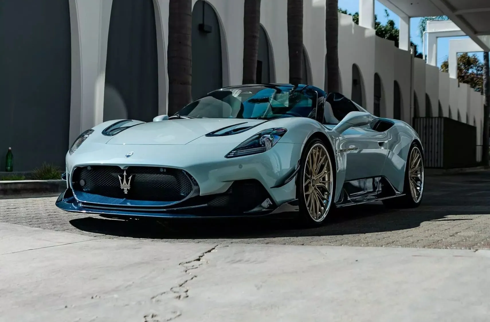 Los chicos de 7 Design House también han equipado este Maserati MC20 Cielo con unas sensacionales llantas de aleación forjadas que casan a la perfección con el look de esta máquina. Acabadas en oro mate, tienen 21 pulgadas y están calzadas con unos neumáticos Michelin Pilot Super Sport CUP2 en medida 245/30 R21 delante y 325/25 R21 detrás.