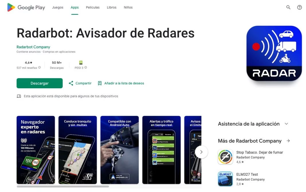 Radarbot se ha posicionado como la aplicación más completa y eficaz en el ámbito de los radares. Está disponible de forma gratuita en Google Play Store, aunque también ofrece planes de pago que amplían sus funcionalidades. Una de sus mayores ventajas es la integración con Android Auto, permitiendo su uso directo en el sistema multimedia del coche, siempre y cuando no se manipule mientras se conduce.