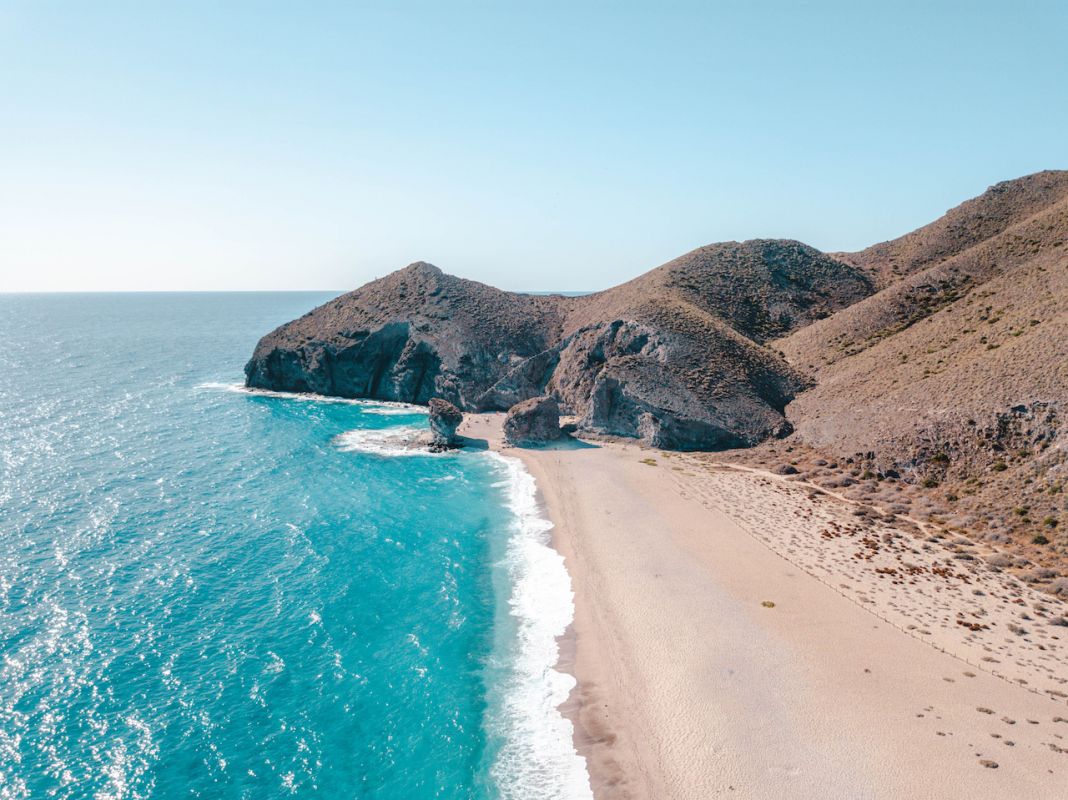 Bordea la costa y recorre el Parque Natural de Cabo de Gata, fusionando playa y desierto para dar lugar a un viaje inolvidable. Una opción es comenzar en el municipio almeriense de Carboneras y continuar después hasta Níjar por la carretera AL-5106, por la que viajaremos a lo largo de la playa y podremos visitar algunas de las más conocidas, como la famosa playa de los Muertos.