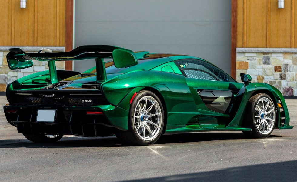 No menos llamativo es este impresionante McLaren Senna, que curiosamente es el chasis número dos de los 500 que fabricaron los chicos de Woking. Su impresionante carrocería se solicitó en fibra de carbono teñida de color verde, dos opciones que no le salieron nada baratas a Michael Fux, pues la fibra de carbono vista fue un extra de 297.575 dólares (269.000 euros), mientras que tintarla en este color Fux Green ascendió a otros 86.930 dólares (78.600 euros). Y por si fuera poco, esta joya tiene solo 203 millas (326 kilómetros).