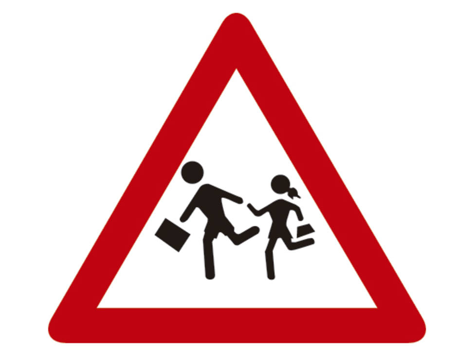 Se han instaladas en diferentes zonas que son escolares en España una señal vertical en el asfalto que representa de forma gráfica a un niño y a una niña que están cogidos de la mano y llevan una cartera.