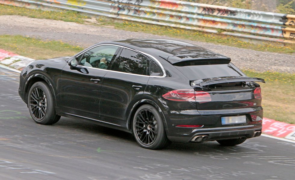 Y para estar preparado, los ingenieros alemanes están sometiendo al Cayenne Coupé a intensas jornadas de pruebas en el circuito de Nürburgring, donde lo han vuelto a cazar nuestros colegas de CarPix. Ahí hemos podido ver más detalles del Cayenne más dinámico. Por ejemplo comprobamos que la línea del techo se asemeja bastante al estilo ofrecido en el nuevo Macan o en el Panamera Sport Turismo. Además, en la parte trasera aparece un alerón retráctil que ayuda a ofrece el mejor rendimiento aerodinámico y también un perfecto agarre al suelo a altas velocidades.