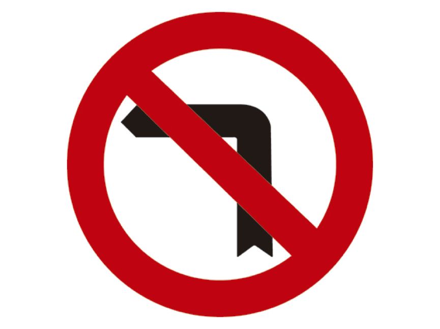 Respuesta correcta: C. Esta es la señal R-303 que prohíbe girar a la izquierda. Incluye, también la prohibición del cambio de sentido de la marcha.