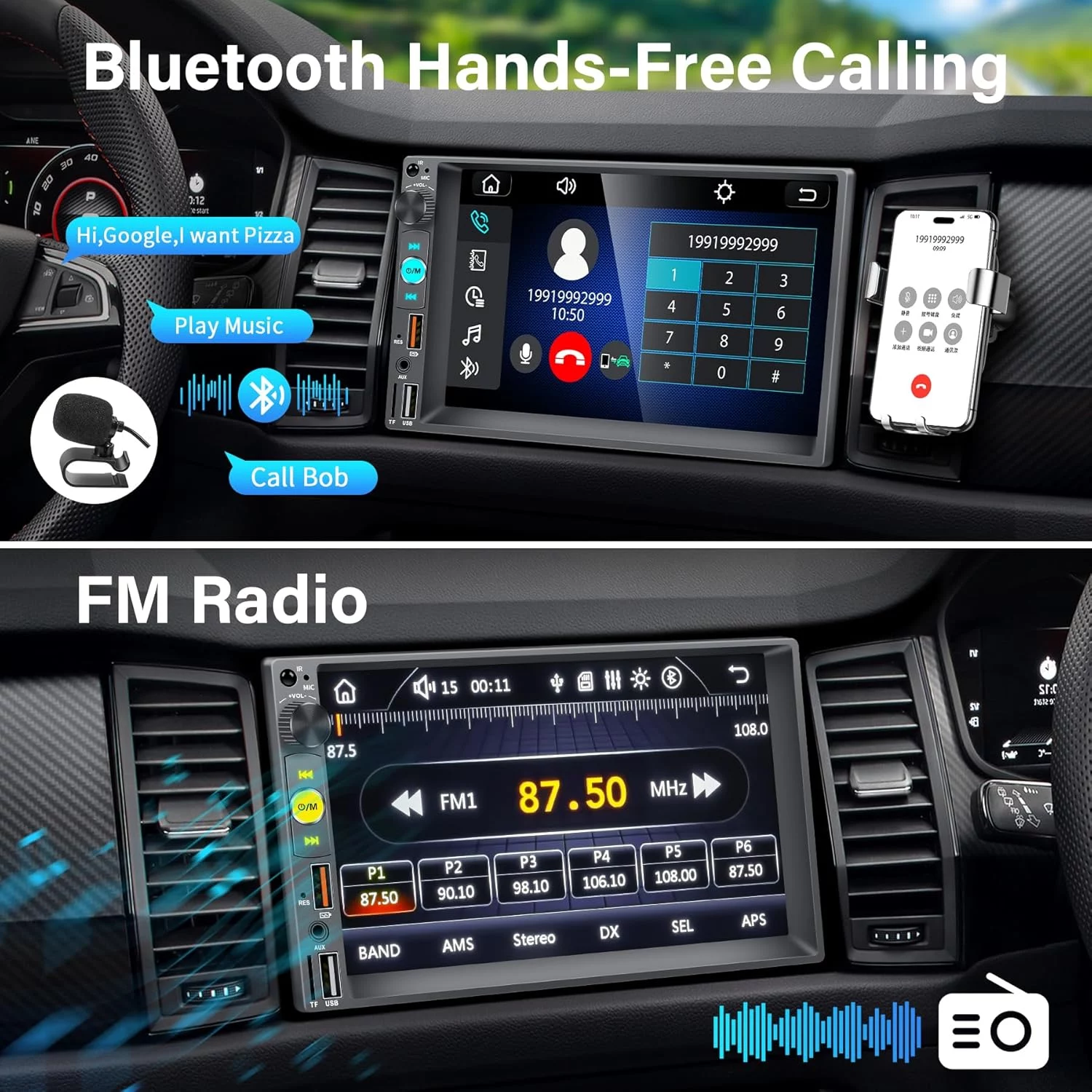 Además de lo esperado, esta radio incluye Bluetooth para llamadas y música, radio FM tradicional, lector de tarjetas micro‑SD, micrófono externo para mejorar la calidad de voz y entradas AV para conectar cámara trasera. También incorpora mirroring para mostrar la pantalla del móvil directamente (particularmente útil en Android), carga rápida para tu dispositivo y compatibilidad tanto con móviles Android como iPhone. Lo más sorprendente: todos los elementos necesarios vienen en el kit por menos de 50 €, incluyendo manual de instalación.