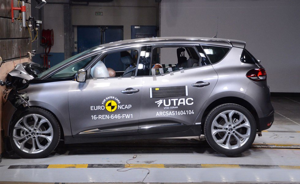 Este mismo mes de agosto, los nuevos Renault Scénic se han sometido a los test de seguridad Euro NCAP. Finalmente el nuevo monovolumen de la firma francesa ha conseguido una nota de 90% en protección de ocupantes adultos, 82% en protección para niños y 67% para peatones. Todo esto se traduce en una puntuación global de cinco estrellas, la máxima a la que puede aspirar cualquier vehículo que se someta a estos test.